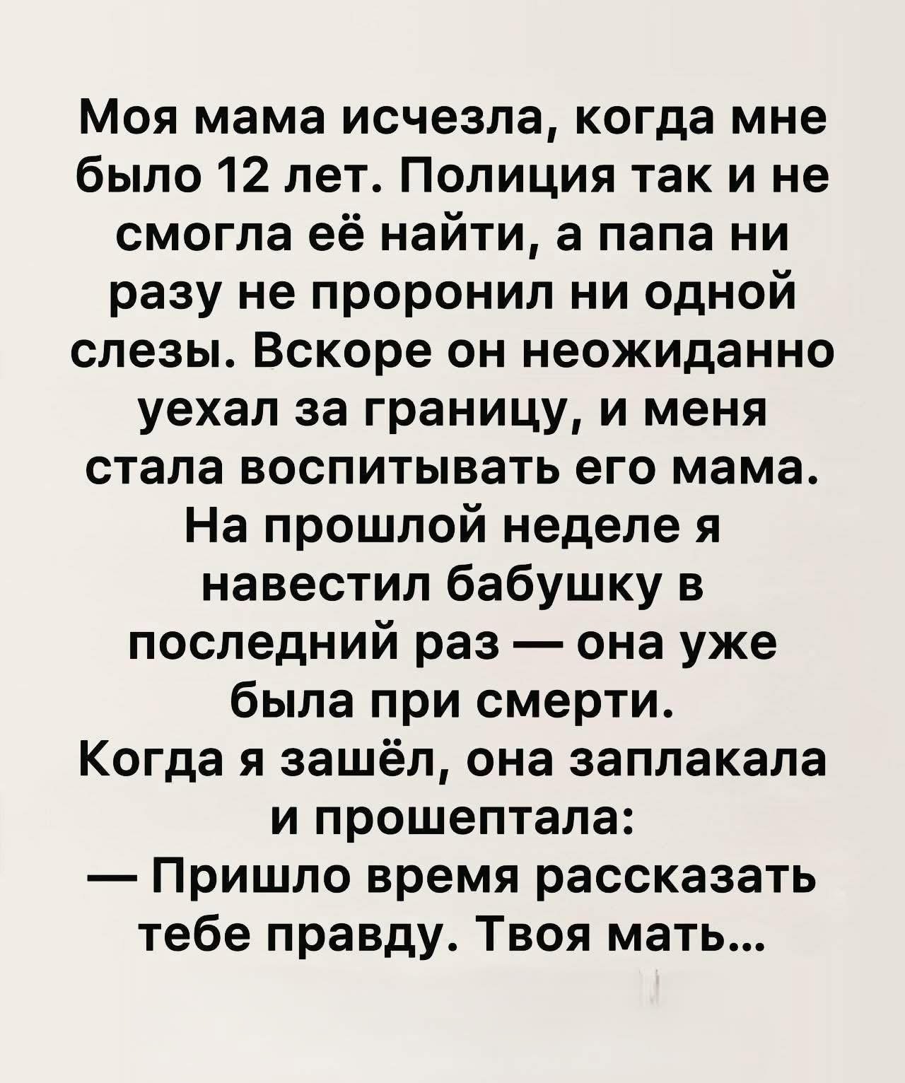 Мама исчезла, а перед смертью бабушка раскрыла правду
