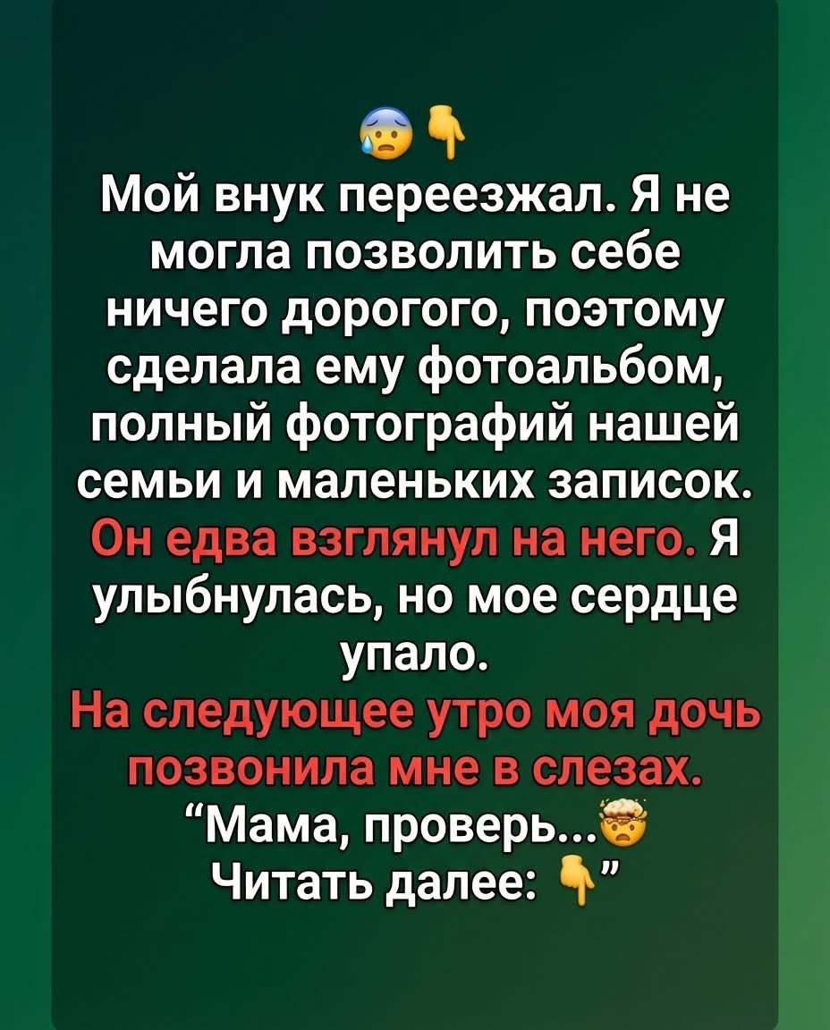 Когда тебе за сорок, ты уже не ищешь бабочек в животе.Хочешь спокойствия, надёжности, тепла. Просто жить — без игр и пафоса. Он казался таким мужчиной. 54 года, инженер, серьёзный, уравновешенный, без вредных привычек.После трёх месяцев встреч мы решили съехаться. Всё выглядело логично.А через два месяца я тихо собрала вещи. Без крика. Без обид. Просто ушла. … Read more